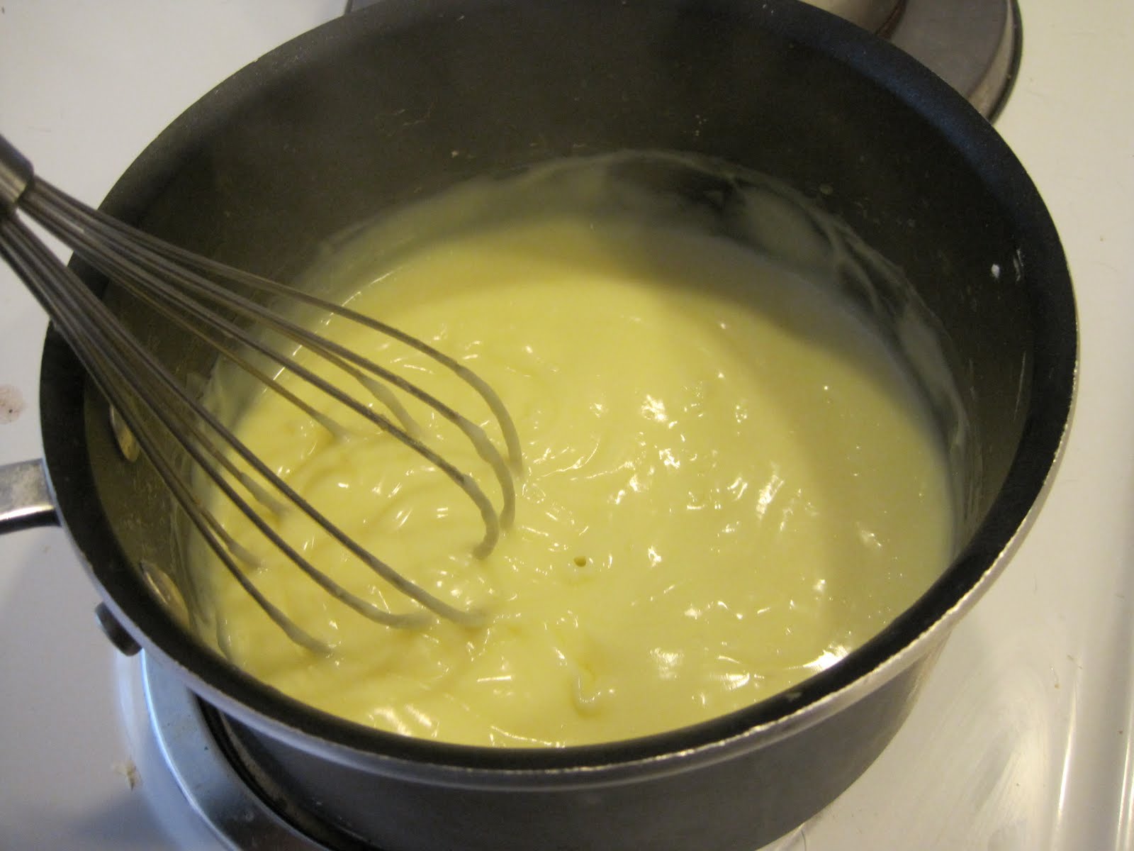 My mother makes the best chocolate frosting so I'm choosing to do that. However, you could a glaze, which is what I do on the actual Boston Cream Pie. I just feel like eating left over frosting, let's be honest.